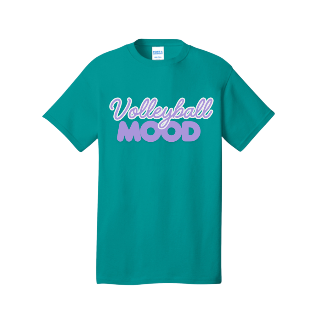 Set the vibe with “Volleyball Mood” Tee—a must-have for players who eat, sleep, and breathe the game. This bold teal shirt brings the energy of the court into your everyday look with a clean, confident design that says it all.